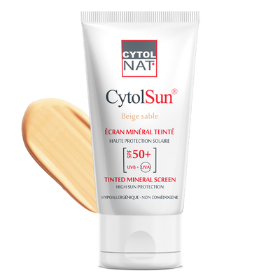 CytolSun écran minéral teinté SPF 50+ est un soin dermatologique photoprotecteur spécialement formulé pour les peaux sensibles et intolérantes aux filtres solaires chimiques.